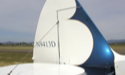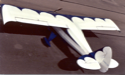 This picture is somewhat distorted because the wing tip is so close, but you can see how I used the scallops on the wing as well as on the tail pieces. I wanted the undersides to be mostly dark because we've found that dark airplanes are easily spotted against the sky or clouds. The mostly white topsides are easy spot if I'm flying below someone. Using a 14 foot long paper template I was careful to line up the top of each curve and the tip of each point in a slanting pattern. It took three tries with the large paper rolls, pencil, string, tape measure, and scissors to get a template where the curve, radius, and points of each scallop were the same and also correct for the wing length with curved tips. Then I got to do it all over again for the top of the wing because it's longer with the width of the fuselage.
