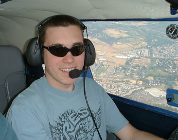 Here's Charlie flying over his home town. He's heading us towards a practice area to do some steep turns and chandelles. He's a student right now and with just a little practice I'm sure he will make a great pilot.